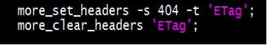 确认没有使用ngx_headers_more清除ETag头:同样在配置文件中不能出现如下语句的任意一句,如果出现请将其删除。